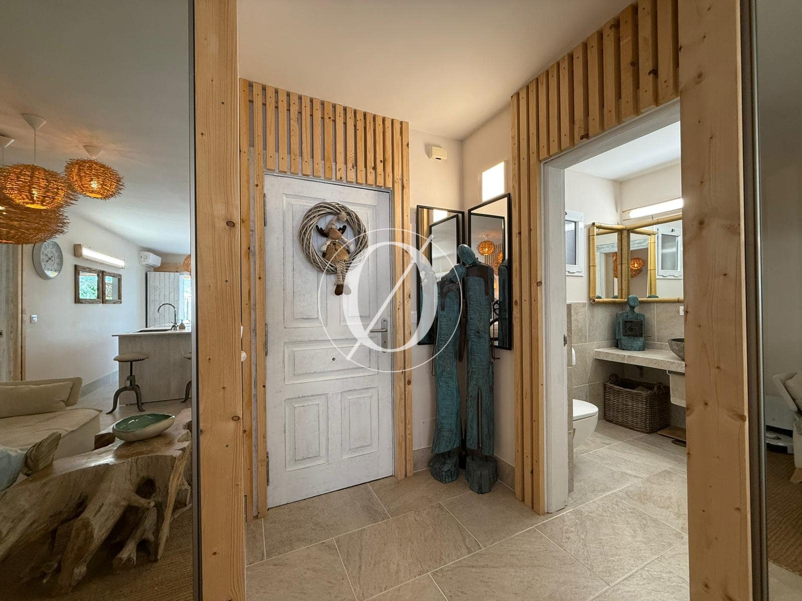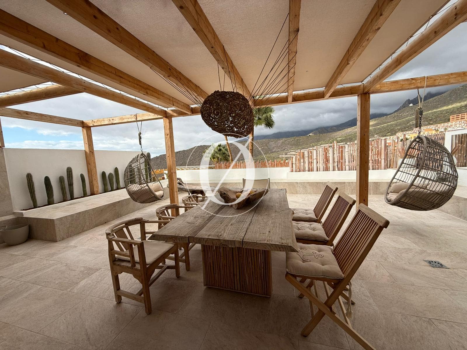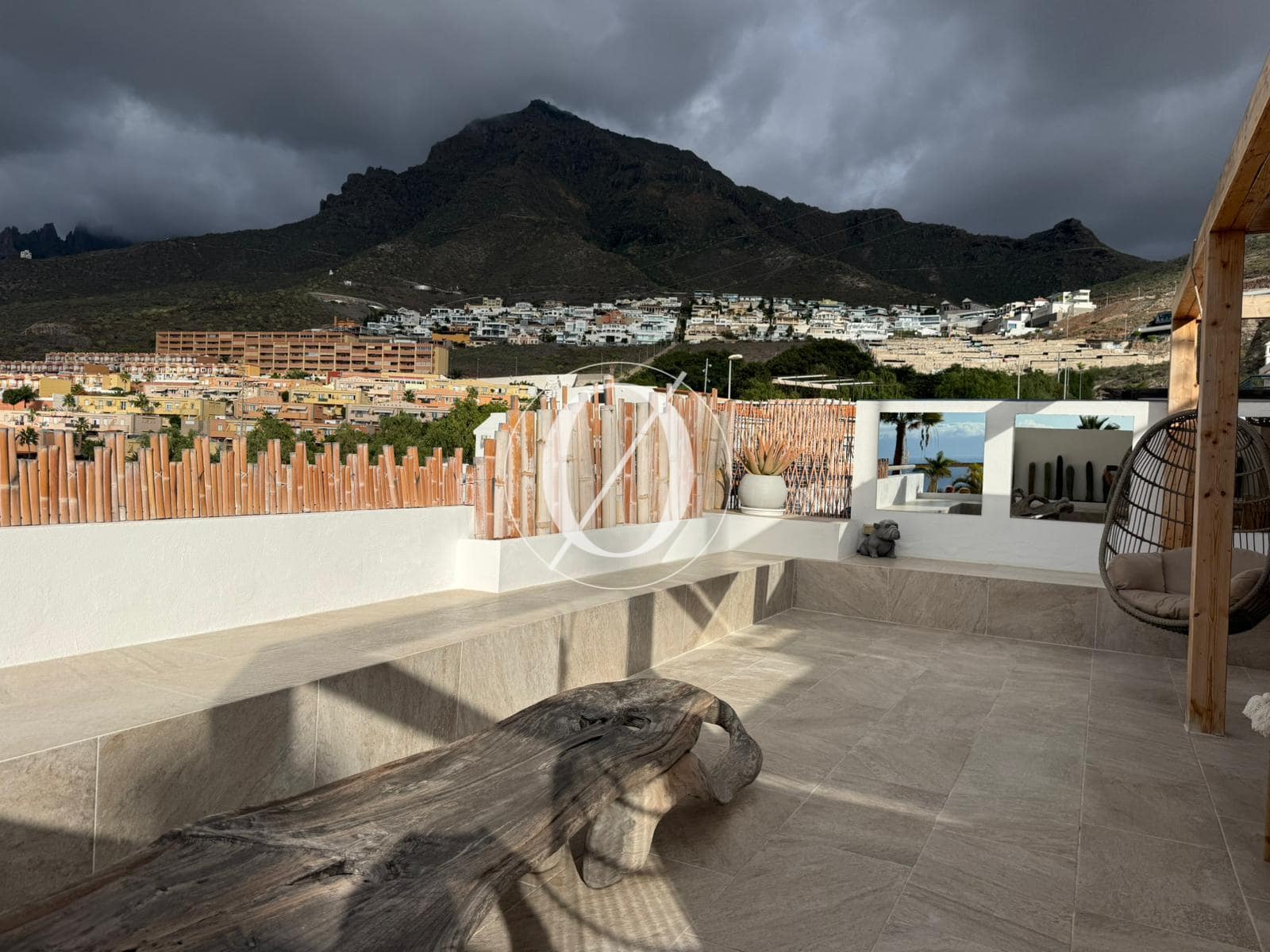 Lejligheden har to rummelige soveværelser, herunder et master-soveværelse med eget badeværelse og badekar, samt to moderne badeværelser. Den åbne stue forbinder problemfrit med et fuldt udstyret køkken og skaber et indbydende rum til afslapning og underholdning. Træd ud på den store 73 m² terrasse og nyd panoramaudsigten over bjergene og Atlanterhavet.