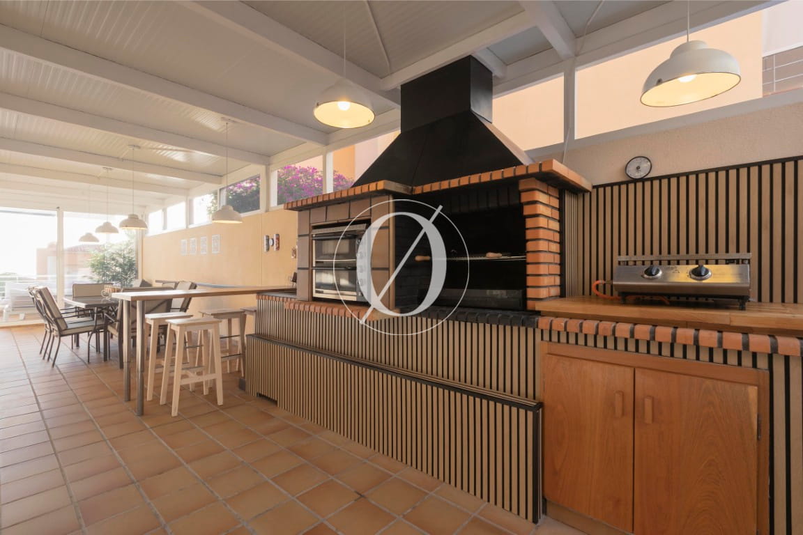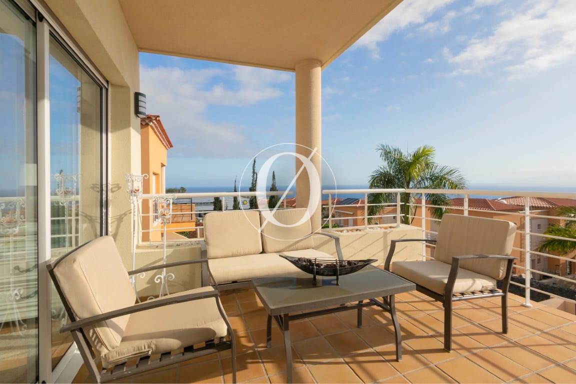 Udendørsområderne er designet til at nyde Tenerifes klima året rundt. Den anlagte have omfatter en privat sauna og et rummeligt grillområde udstyret med traditionel grill, dobbelte pizzaovne og grillplade — ideelt til udendørs sammenkomster. Foran ejendommen findes den private opvarmede pool med solområde samt en stor terrasse, som skaber det perfekte sted at slappe af.