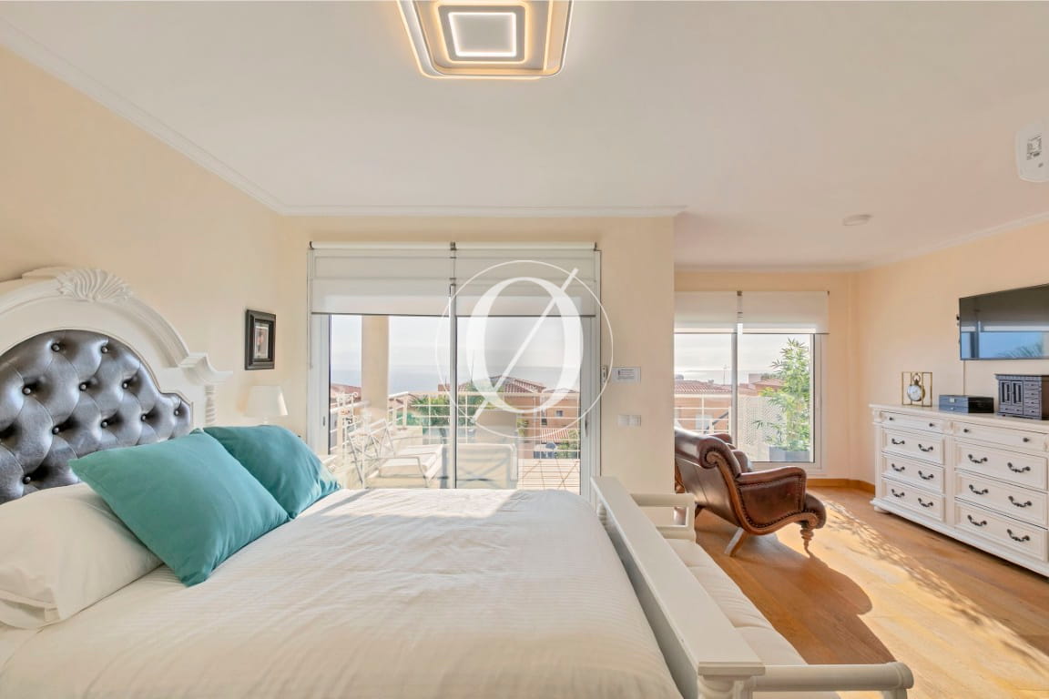 Hovedsoveværelset har eget badeværelse og direkte adgang til en hjørneterrasse med udsigt over Atlanterhavet og øen La Gomera. De øvrige soveværelser har komfortable dobbeltsenge og god opbevaringsplads, mens det fjerde soveværelse i den ombyggede kælder aktuelt bruges som hjemmekontor.