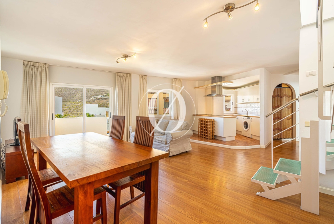 Doświadcz wyjątkowego życia nadmorskiego w tym eleganckim, 3-pokojowym apartamencie z 2 łazienkami, położonym w jednej z najbardziej prestiżowych części Adeje. Usytuowany na trzecim piętrze bez windy, oferuje 104 m² jasnej powierzchni mieszkalnej, 13 m² tarasu oraz wyjątkowy dostęp do dwóch imponujących tarasów dachowych z panoramicznym widokiem na Ocean Atlantycki i wyspę La Gomera.